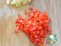 Остальные ананасы, которые требуются по рецепту нарежьте мелко. (уйдет не вся банка, оставшиеся ананасы можно использовать в других блюдах) Красный сладкий перец тоже нарежьте мелко |
