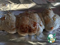 Обжарьте рулет в смеси растительного и сливочного масел со всех сторон до румяной корочки. Заверните в фольгу и уложите в форму для запекания. Готовьте в духовке 3 часа. |