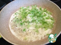 Духовку разогрейте до 120 градусов. Мелко нарежьте лук и сельдерей. |