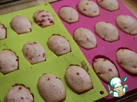 Можно остывшие "Мадлен" просто посыпать сахарной пудрой, а можно приготовить клубничную глазурь (смешать клубничное пюре с сахарной пудрой) и покрыть ею часть печений |