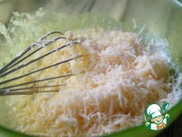 Для заливки взбить венчиком яйца, затем добавить сметану и сыр. Перемешать. |