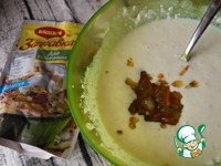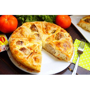 Описание: Очень люблю заливные пироги, так как готовятся они достаточно быстро и могут заменить горячее на ужин. Обычно, тесто в таких пирогах, представляет из себя жидкую массу. В данном же рецепте использовано слоеное тесто, а заливкой будет смесь из сметаны, сыра, яиц и заправки Магги. Заправка позволяет придать пикантный вкус готовому пирогу.