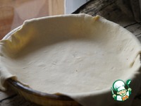 Слоеное тесто раскатать в тонкий пласт и выложить в форму для выпечки (у меня диаметр формы 24 см). Свисающие края не обрезать! |