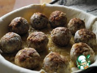 Обжарить фрикадельки с двух сторон на сковороде с растительным маслом. До готовности доводить их не нужно, так как они доготовятся вовремя выпечки в духовке. |