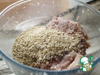 В фарш добавить овсяные хлопья и вымесить, соединяя продукты в одну массу. |