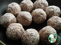 Сформировать из готового фарша фрикадельки (у меня вес 1 фрикадельки = 50 гр). Обвалять их в муке. |