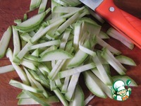 Овощи и зелень вымыть и обсушить. Нарезать кабачок соломкой. |