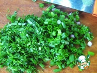 Мелко нарезать зеленый лук и петрушку с укропом. |