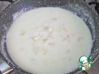 Приготовление соуса. Смешать молоко с овощным бульоном и мукой и прогреть 5 минут, помешивая. Добавить оставшийся сыр, посолить, поперчить. |