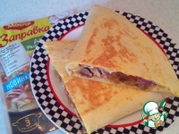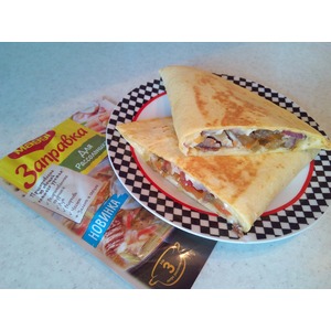 Описание: Кесадилья - одно из вкуснейших блюд мексиканской кухни. Традиционно для ее приготовления используют лепешки-тортильяс и сыр, начинка же может быть любой. Я предлагаю попробовать кесадилью с курицей и овощами, времени для приготовления потребуется минимум, а результат порадует!