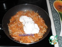 Обжарить на сильном огне нашинкованный кубиком лук, тертую морковь, добавить к ним тертый корень сельдерея, потушить до мягкости овощей, заправить солью, черным перцем, |