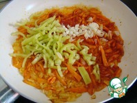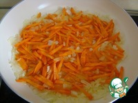На растительном масле обжарить до прозрачности лук, добавить морковь. |