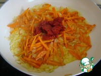 Через 5 минут положить томатную пасту, обжарить 1 минуту. |