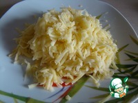 Картофель натереть на крупной терке, добавить в кастрюлю следом за зажаркой. |