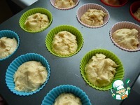 Порционные формочки (смазать маслом, силиконовые не смазывать) для выпечки кексов заполнить тестом на 2/3. Из данного количества ингредиентов получается 12 небольших кексов. |
