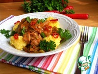 Подавать горячей, обильно посыпав зеленью, конечно, лучше зеленью кинзы. |