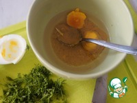 Посолить и поперчить соус, добавить рубленную зелень укропа и рубленный яичный белок. В конце добавить заправку Магги для рассольника и все хорошо перемешать. |