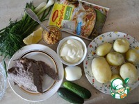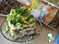 Описание: Сочный, пикантный салат из доступных продуктов. Пикантность ему придает заправка из соленых огурчиков, а огромное количество зелени и свежий огурчик - легкость и летнее настроение!