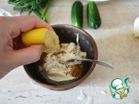 Готовим заправку - смешиваем горчицу, майонез и сок лимона |