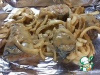 Описание: Скумбрия, приготовленная по этому рецепту, получается очень нежной и сочной, а маринованный хрустящий лучок отлично дополняет насыщенный вкус рыбы.