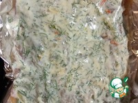 Сверху вылить соус и разровнять, чтобы все филе оказалось покрыто. Отправить в заранее разогретую до 200°С духовку на 20 минут. |