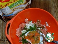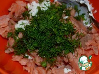 В миску выложить творожный сыр, рыбу и измельченный укроп. |