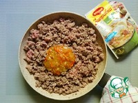 Обжариваем мясной фарш до готовности, затем добавляем содержимое пакетика приправы MAGGI® "Заправка для Рассольника". |
