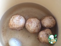Грибы отварить и достать из бульона, порезать на кусочки. |