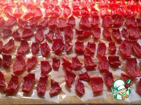 И перец так же. Выкладываем в сушилку, так же сушим, только без приправ и чеснока… |