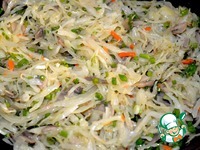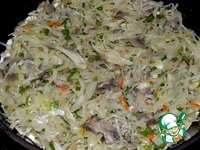 В сковороде разогреваем растительное масло. Грибы обжариваем до слегка золотистого цвета. Затем добавляем капусту и готовим 5-7 минут. |