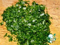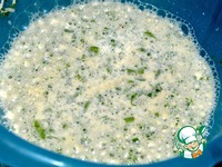Яйца взбиваем, добавляем молоко, сыр, чеснок и петрушку еще раз взбиваем. |