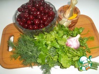 Зелень режем мелко. Специи соль и сахар смешиваем в отдельной посудине. По истечении времени добавляем все это к вишне… |