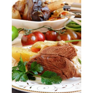Мясо получается нежнейшим и тает во рту, а пропитавшийся сокам картофель очень вкусен. |