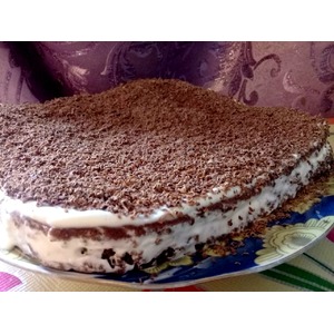 Формируем тортик. Коржи промажьте кремом и посыпаем сверху натертым шоколадом. Торт поставьте в холодильник для того, чтобы он хорошо пропитался (Примерно на 3 часа) |