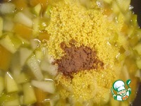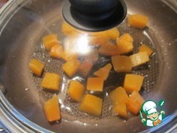 С тыквы срезать кожуру, нарезать кубиками (у меня была замороженная) и тушить под крышкой с растительным маслом и 1-2 ст. л. воды |