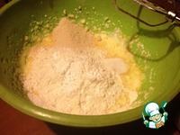 Всыпать просеянную с разрыхлителем муку, миндальную муку и замесить тесто. |