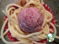 На томатный соус кладем фрикадельку... |