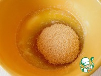Растопленное масло смешиваем с тростниковым сахаром и заливаем наше тесто. |