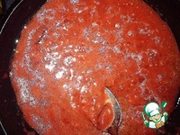 Добавляем вино, немного воды, буквально чайную ложку разведённого водой крахмала, зубчик чеснока, сахар. ждём пока закипит и снимаем с огня |