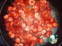 Режем клубнику на мелкие кусочки! И начинаем пережаривать на сковороде, чуть смазанную маслом. |