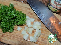 Огонь убрать до минимального, чеснок и петрушку измельчить. |