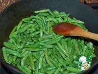 Фасоль нарезать на кусочки, промыть, обсушить. Обжарить на 1 ст. л. растительного масла, минут 5 - 7, на среднем огне, помешивая. |