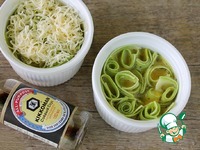 Кабачок нарезать тонкими полосками при помощи овощечистки. |