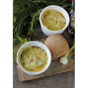 Подготовленные формочки с овощами залить яичной смесью и посыпать тертым сыром. |