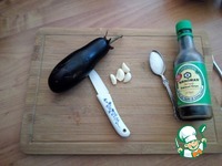 Займёмся баклажаном. Моем его и обсушиваем. Готовим чеснок, сахар и соевый соус. Я взяла для баклажана ТМ KIKKOMAN ЛЁГКИЙ. |