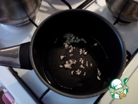 Наливаем масло в сковороду, разогреваем его и выкладываем половину чеснока. Делаем с минуту, чтобы масло стало ароматное. |