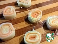 Свернуть овощи спиральками и зафиксировать зубочистками |
