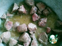 Заливаем мясо кипятком, накрываем крышкой и оставляем на маленьком огне на полчаса |