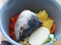 Описание: Уха из голов лососевых рыб (головизны) - блюдо весьма популярное в нашем регионе. У нас в магазинах даже продают "наборы для ухи", куда входит голова и хвост лососевых рыб. Я предлагаю еще один вариант рыбного супа с первыми огородными овощами и пикантной заправкой.