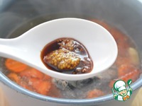 Суп снимите с огня, удалите луковицу, влейте заправку и добавьте укроп. попробуйте на соль, при необходимости досолите по вкусу |